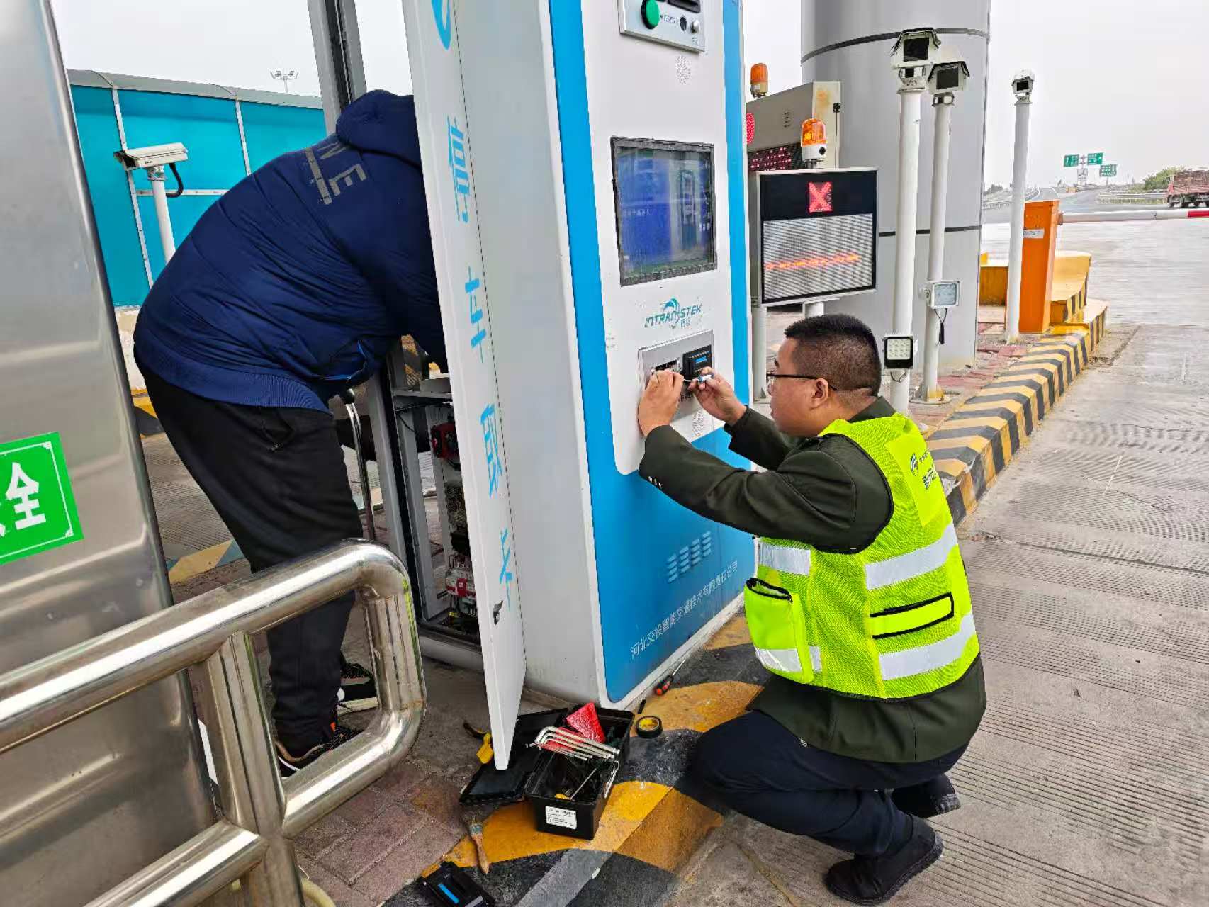 在新乐收费站的车道旁,机电维修人员身着亮眼的反光背心,或蹲身调试设备按键,或协同检修机器内部构件,工具箱里的扳手、螺丝刀等工具整齐排列,他们专注的身影成为收费站一道务实的风景线。