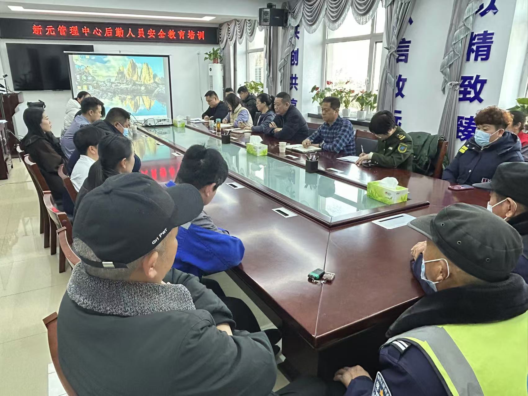 岁末年初,为保障后勤工作的顺利开展,提升后勤人员的安全意识及安全防范水平,12月25日,新元管理中心联合禄发公司、国盾公司先后分两个会场召开后勤人员安全教育培训会。管理中心综合办主任李玉主持会议,管理中心主任助理康爱忠出席会议。
